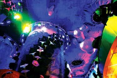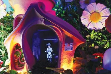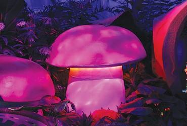有娃娃,当然有快乐的花园。从矮矮的门走进去,雏菊、牵牛花、向日葵,更多的是叫不出名字的花花草草,各色各样的蘑菇,加上明艳的灯光,一幅“童话乐园”就这样绘成了。