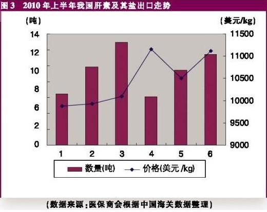 2010年上半年,我国肝素共出口到43个国家和地区,其中对34个国家和地区的出口显示为增幅,我国出口到法国的肝素增幅更是达到246%。