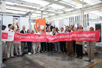 海尔全球第1亿台冰箱在意大利基地下线 不经意间,这个中国家电制造业的王牌选手由此创造了一个新的中国纪录。如果从1984年引进德国冰箱生产线算起,海尔仅用26年就实现了1亿台的产销量,平均每分钟就有近8台海尔冰箱走进全球各国的不同家庭。这台橙色外观的意式三门冰箱在最近两年来已成为海尔拓展欧洲市场的主战机型,并荣获欧洲“红点至尊”等多项国际设计大奖。