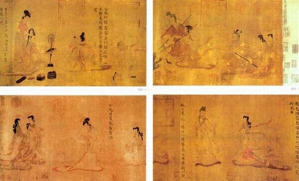 目前传世的有唐宋两个摹本,其中前者被视为最得原作神韵的珍品,画本身及装裱部分压有宋、金、明、清内府藏印,及明清历代收藏者的私人鉴藏印。