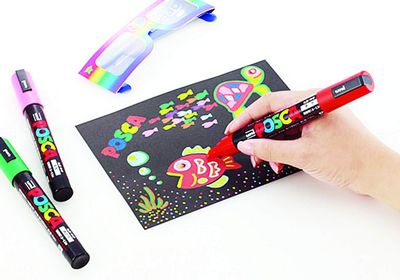 Posca 3D彩色笔每套都有8色彩笔,包括红、橙、黄、绿、紫、蓝等颜色。同时,每套Posca 3D彩色笔都随包装附送5张黑色纸和一副专用3D眼镜——Posca 3D彩色笔在黑色背景上的3D效果最为明显。本报综合