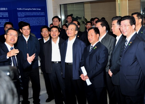 广东 2010-11-17(中国商业电讯)--2010年11月12日,中共中央政治局常委、国务院总理温家宝在出席广州第十六届亚运会开幕之前赴广州科学城视察,在中共广东省委书记汪洋,广东省省长黄华华,广州市委书记张广宁等省、市、萝岗区领导的陪同下,深入了解科学城高新科技企业的发展现状与自主创新能力等情况。