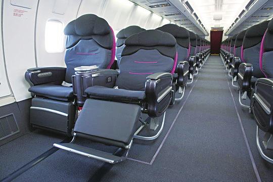 英国航空的往返纽约和伦敦的纯商务航班,飞机虽不大,却是长途飞行,拥有一天两班,一周六天的飞行时间。飞机采用的是A318小型客机,座位标准是106个,但法航的A318,就有118和123两种座位布局。在这架被用做“全商务舱”的客机上,总计32个座位,方向朝前,与英国航空正常的商务舱座位不一样,有3个空乘服务人员提供服务。