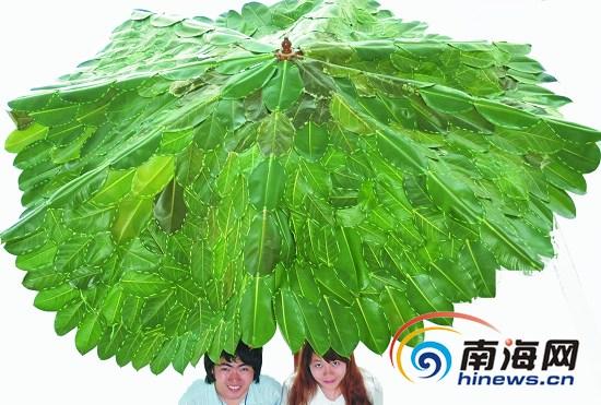 伞面面积5.1平方米由海大一对大学生情侣缝制而成获评“世界最大树叶伞”