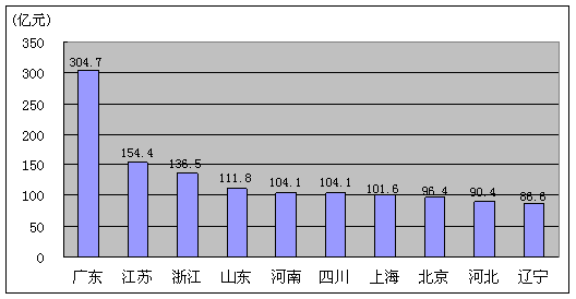 图11. 2010年1-11月电信主营业务收入排名前十名的省份