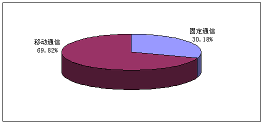 2010年1-11月,移动通信收入累计完成5718.8亿元,比上年同期增长11.6%,在电信主营业务收入中所占的比重从上年同期的66.70%上升到69.82%;固定通信收入累计完成2471.5亿元,比上年同期下降3.4%,在电信主营业务收入中所占的比重从上年同期的33.30%下降到30.18%。