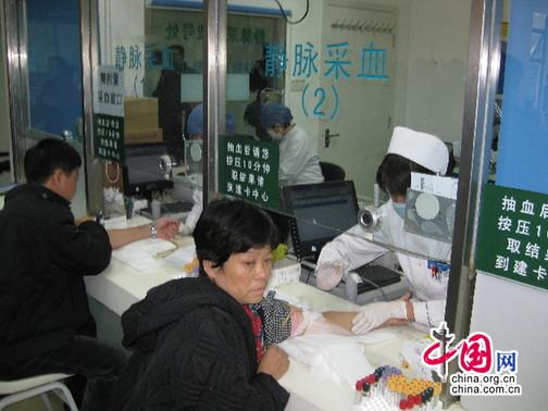 2010年11月20日,北京天坛医院医务人员为患者抽血化验。马彦明 摄