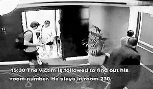 阿巴士单酒店大厅里有潺潺流水的喷泉,富丽堂皇。如果要上到2楼的房间,必须要经过一个狭长的走廊。当马巴胡赫来到酒店的时候,他已经非常警惕:他在前台登记时不停四周环望,甚至在走出2楼电梯时还小心的往后看了看,但是他却忽视了和他一起乘电梯的2个网球爱好者。