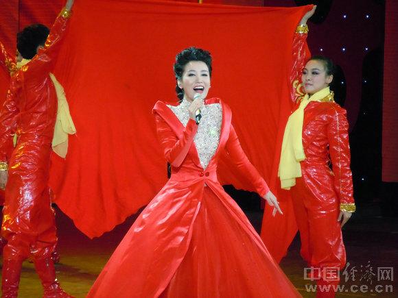 春晚献礼建党90周年 谭晶红裙高唱《旗帜更鲜艳》
