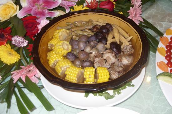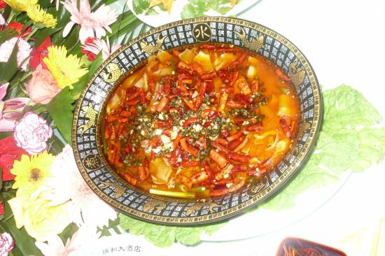 酒店餐厅设有早点、中餐、晚餐和粤味晚茶;酒店餐厅可同时容纳1600多人的宴会就餐,其中12人—20人台的豪华包房有4间、10人台的包房有10间;餐厅主要以川味、滇味、粤味为主(其中以“草乌鸡”最为特色),菜品齐全、服务一流,均受顾客的一致好评。