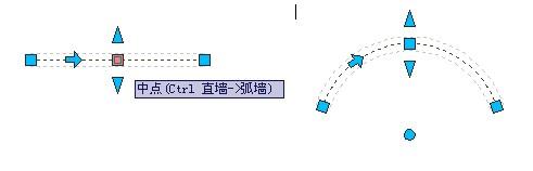 3、 浩辰CAD建筑2011的墙利用夹点就可以实现直墙和弧墙的自由切换,一键可以完成墙体反向操作。