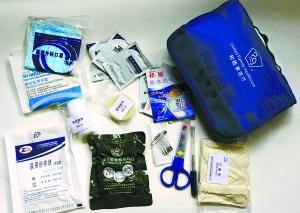 | 内装急救包扎包、弹性绷带、温度计、橡胶医用手套、创可贴的家庭急救包成为市民“新宠”。本报记者 阎彤摄 J124 |