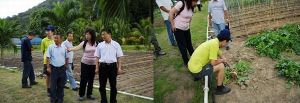 在蔬菜育苗区,商务部领导详细询问了中国引进蔬菜品种的数量、种类及中国品种在当地的引种示范与应用、推广情况。林组长就中国品种在多米尼克引种示范情况,向考察团领导作了详细解答,并就项目组向当地农户无偿赠送各类蔬菜种苗及提供英文栽培资料的良好方式作了汇报。