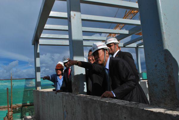 潘大使在致辞中祝贺项目顺利封顶,代表中国政府感谢项目承建单位上海建工集团和中马两国工人为此付出的努力。他表示,该项目建成后,将有力地促进马旅游业发展,为马承办大型国际和地区会议提供良好的硬件保障,也将为马创造大量就业。