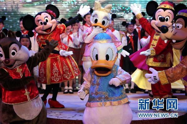 4月8日,米老鼠、唐老鸭等一大批迪士尼卡通形象出现在上海迪士尼乐园开工仪式上。 新华社记者 任珑 摄