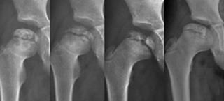 患者,邵XX,男,江苏宿豫,05年3月(5岁)从高处坠落,4个月后出现右髋疼痛、跛行,当地诊断为股骨头坏死,行股骨头减压术等,无效;06年9月到北亚骨科医院,以股骨头坏死晚期(Ⅱ型)入院,经北亚量子整体医学“三补一活”整体医学治疗,22个月(住院14天)复查,临床治愈,功能恢复正常。
