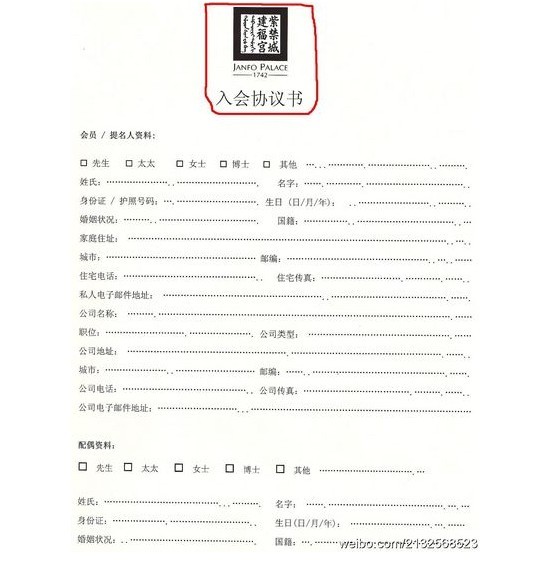网友晒故宫建福宫富豪会所入会协议 会费一百万