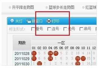 走势图打印功能是178彩票走势图的特色功能之一,在设计过程中充分考虑到走势图在A4纸张上打印效果。目前点击走势图左上角的打印按钮,可以直接打印,在纸张上的走势图更加直观,对于不习惯坐对着电脑屏幕分析走势的彩民来说,这个功能无疑解决了他们的大麻烦,毕竟走势图分析是灵感干的活。