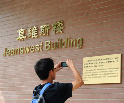 不过,“四教”门口挂出了“真维斯楼”的牌子,这一变化立即被清华学生发现,“真维斯楼”的芳容也随即现身微博,并迅速在热门话题榜中升至首位。