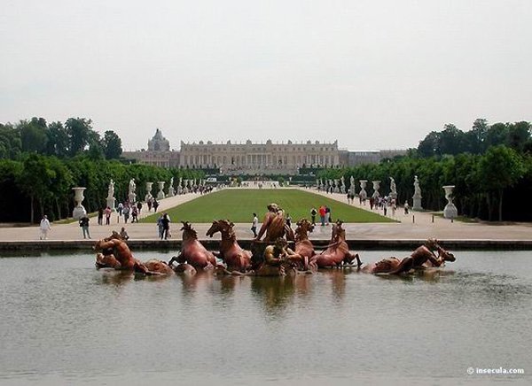 凡尔赛宫是法国封建时的帝王的行宫,在巴黎市西南凡尔赛城。始建于十六世纪,后屡经扩建形成现存规模。包括宫前大花园、宫殿和放射形大道三部分。形体对称,轴形东西向。宫内装潢极其豪华,内壁悬挂壁毯、油画、雕刻,大厅内陈列著名雕刻家的青铜或大理石雕像,享有艺术宫殿之盛誉。1919年《凡尔赛和约》在此签定。