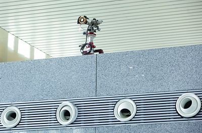 进入南京南站三楼候车大厅,您的左手边是哈根达斯、真功夫、面包物语等“小吃店”,您的右手边是一些南京特产的展卖台。您左前方的“半层”上是“小吃街”;右前方的“半层”是仿照秦淮古建筑的“食品、用品街”。此外,记者还在每个检票台和每个柱子上面,都发现一个像“机器人瓦力”一样的东西。车站的工作人员介绍,这是泡沫灭火器。这种电动防爆型高倍数泡沫发生器鼓风压头,可输送泡沫达三百米远,适用于扑救仓库,大型煤矿、地下商场等大面积火灾,“失火的时候,它会‘啪嗒啪嗒’地不断往外喷灭火物质。”