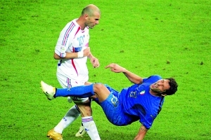 其实,尽管他经常扮演恶汉角色,但他也有被打的时候,例如舍甫琴科用头顶过他;伊布拉辛莫维奇把他踢得瘸着腿下场;托尼故意肘击,令他眉骨破裂血流满面。当然,最著名的是06世界杯决赛的“齐达内头槌门”让他成为家喻户晓的人物,而被头撞倒在地的他却被球迷贴上了恶汉的标签。硬汉还是恶汉?仁者见仁智者见智!
