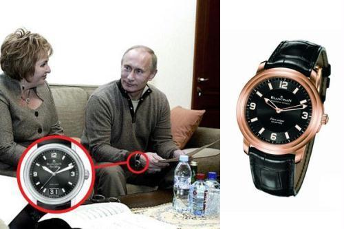 普金的宝珀表出镜率相当高,据说他至少有三块宝珀表。而关于宝珀表,还有一段总理赠表给普通工人的故事。英国《每日电讯报》曾报道,普京曾在视察位于图拉州的一家兵工厂时,被一名工人当场索要纪念礼物。普金犹豫了一下,仍然取下自己的腕表送出。据了解,这块手表就是著名的瑞士宝珀表,大概价值约为6000美元,几乎相当于当时普通俄罗斯人一年的收入。