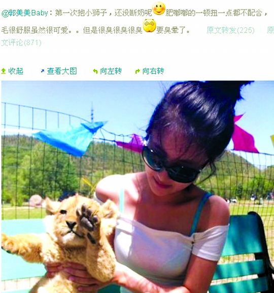 网友还怀疑,王军在深圳,但是郭美美住在北京,开的车也在北京,其社交圈也在北京,可以断定郭美美主要生活在北京,根本没时间见面。郭美美最近回深圳是在6月13日,和其母亲同班飞机抵达,但在6月26日因北京警方传唤返回北京。根据航空信息,郭美美飞行频率不高。而且,网友“我就是个爆料的小号啊”贴出几张图片,是今年5月21日偶然在动物园拍到郭美美与小狮子合影的照片,同行的是位年轻男子,搂腰离去。