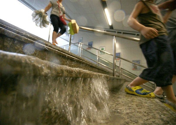 在南京市交管局监控系统中看到,城市东、南、西、北交通四处中断,主干道都堵成一片,车辆排成长龙,路边一楼店铺进水,纷纷提前关门。栖霞大道、十月广场积水严重,燕山路全线封路。玄武湖隧道中,很多私家车熄火,司机们戏称隧道是“海底世界”。在闹市区,积水倒还灌进地铁站,工作人员紧急排水,加设防滑提醒标志。一些地势低洼的小区住户被淹,有的城南老房屋顶发生塌陷。