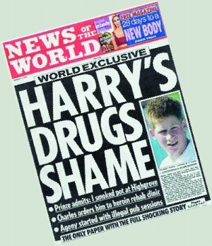 而除了窃听查尔斯王储和戴安娜王妃,《世界新闻报》连他们的儿子哈里王子也不放过。2002年,《世界新闻报》以“哈里吸毒真丢人!”的大幅标题文章披露哈里王子吸食毒品大麻的事件,整个英伦三岛因为这件事一片哗然。