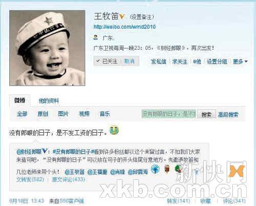 广东卫视财经类节目《财经郎眼》是国内最顶尖的财经类电视节目之一,由“主持人+郎咸平+×嘉宾”的三人谈形式出镜,据说该节目的网络点击量一直居高不下,是台内颇有影响力的节目。近日,《财经郎眼》主持人王牧笛的一条微博备受网友的关注,原来王牧笛在其微博上公布了自己当月的绩效工资仅有1000余元,不少网友对此议论纷纷。