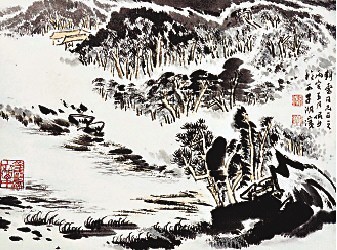 如在今年7月,国内一家拍卖行上拍了如图这件署名陆俨少的画。缘于此画的上款人是与陆俨少先生风雨同舟了30多年陆俨少的大弟子,那些天我共接到过几十个电话,很多有购买意向的藏家专门向我求证此画的真实性。我一瞧此画署名(如图伪作)就是一件典型的没有用母本来赝造的仿制品,所以其与陆俨少手笔的笔墨与造型差距极大,艺术水准出奇地低,全画毫无章法,气息疲弱,画上书写的款识漏洞可谓既大又多,总之充其量它只是件低级仿品。但由于该拍卖行在拍品图录上专门煞有介事地对上款人作了一番特别注解,所以该画当时颇为吸引眼球,这抑或就是本文所重点剖析的出处问题,它所能带来超强诱惑力的最好诠释吧!此处(如图真迹)才真正是从上款人家中找来的陆俨少真迹,伪作署有一样的上款,相信它在此处能很好地供大家作一番分析比较。