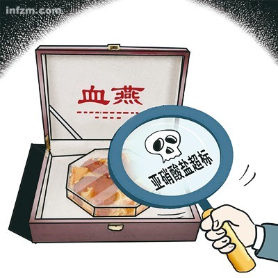 8月16日,浙江省工商局抽检发现,三万多盏血燕亚硝酸盐含量超标,最高超标350倍,血燕产品不合格率高达100%。