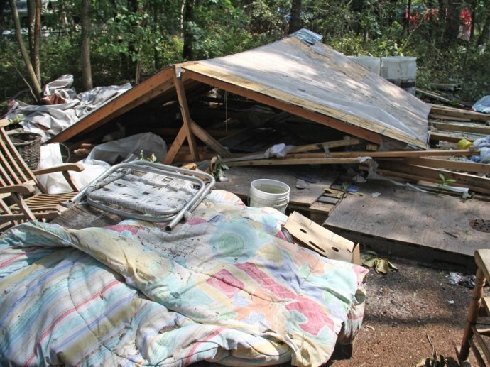 随著美国债务深重,经济复苏缓慢,新泽西州仍有很多人失业,越来越多人到森林里搭帐篷和木屋蜗居,境况凄凉。这儿没有水电等公共设施,只有一个公用的汽油发电机,大家靠它来烧水洗澡和提供电力,至于三餐则多半靠附近的餐厅施捨。这里还有一间小教堂让居民礼拜,慰藉心灵。