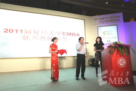 毕业酒会的高潮是由复旦大学管理学院常务副院长周健教授和副院长孙一民教授宣读2011届复旦大学EMBA优秀教师名单。经过200余位同学的当日不记名投票,鲍勇剑、华民、李若山、钱世政四位教授荣膺此项荣誉。
