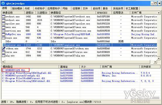 图4:病毒现象:很多进程下都加载了lpk.dll。