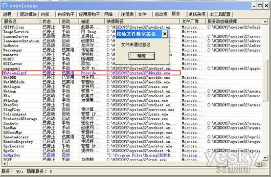 图9:再次检查系统服务,可发现这个服务对应的文件没有数字签名。