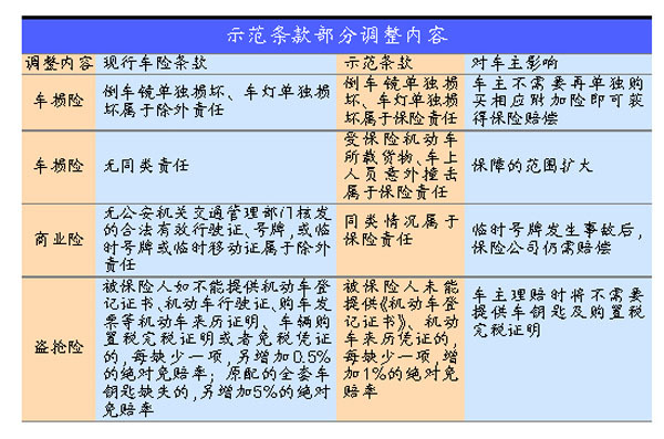 比如,“协会条款”对现有商业车险的附加险条款进行了大幅简化,把部分附加险纳入主险保障范围,将原有商业车险中“教练车特约”、“租车人人车失踪”、“法律费用”、“倒车镜车灯单独损坏”、“车载货物掉落”等附加险的保险责任直接纳入主险保险责任;但诸如玻璃单独破碎险、自燃损失险、车身划痕损失险等十个附加险得到了保留。