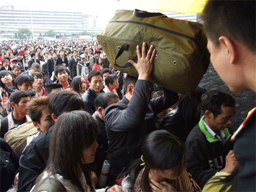 2012年春运,铁道部要求实行实名制购票,并规定“票、证、人”一致才能进站。据新京报消息,在杭州火车南站,只要给“黄牛”一两百元钱,无票也能进站上车。1月10日早,在杭州火车南站售票厅门口,一位自称“吴大姐”的妇女说,只要交100块钱,就能帮忙进站上车。