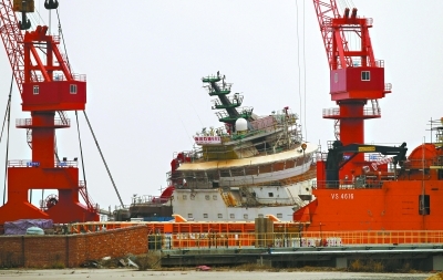 昨日武船南通基地码头海洋石油682船舶施救现场。新华社发