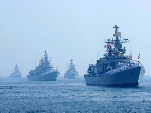 印度海军实力不俗,又具备地理位置的优势,堪称印度洋地区一支举足轻重的力量。图为印度海军舰艇编队。(资料图)