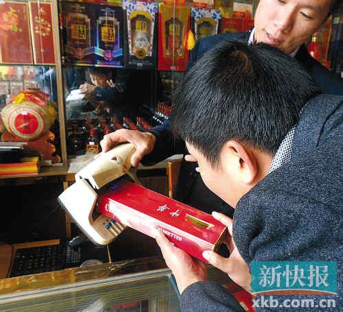 ■烟酒老板向记者演示称,不同编码的中华烟回收价也不同。新快报记者 邹柳洲 林驰胜/摄节快过完了,酒没喝完节快过完了,烟没抽完