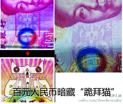 百元人民币暗藏“跪拜猫” 专家称是设计防伪技术