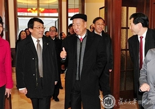 随后,吕志和校董一行来到我院参观访问。我院陆雄文院长向来宾介绍了学院的现状以及未来在科研、人才等各方面的发展规划。吕志和校董则与大家分享了多年管理的成功经验和体会,并表示将继续对学院给予关注和支持。