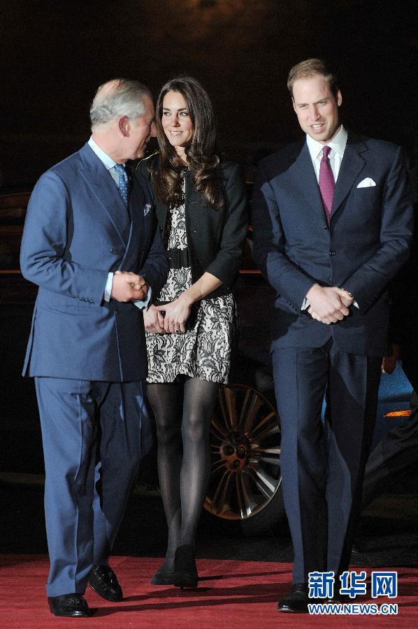 英国剑桥公爵夫人、威廉王子的妻子凯特王妃(中)在英国伦敦出席一个慈善音乐会时身着小礼服裙搭配黑色小西服以及黑色高跟鞋和黑色手包(2011年12月6日摄)。 2011年4月29日,当凯特·米德尔顿在威斯敏斯特大教堂与英国威廉王子步入婚姻殿堂,又一个现代版“灰姑娘”的童话故事打动了无数人的心。婚后英伦王妃凯特的一举一动都成为媒体的焦点。在服装搭配上,凯特王妃很有自己的见解,她穿着打扮的风格也成为众多年轻姑娘效仿的对象,甚至被时尚界称为“凯特效应”。据报道她某次身着售价175英镑的某品牌平价驼色礼服裙在白金汉宫会见到访的奥巴马夫妇,照片一公布,这件礼服裙所属品牌的网站立刻被蜂拥而至的消费者挤爆,所有分店的该款裙子被抢购一空。整体色彩的统一与呼应,服装合身的剪裁,精心选择的巧妙配饰,打造出凯特王妃优雅、简洁、大气、端庄的穿衣风格。新华社/法新(程婷婷编辑)