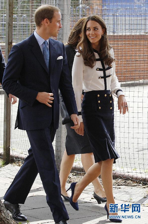 英国剑桥公爵夫人、威廉王子的妻子凯特王妃在英国伯明翰参加活动时身着白色衬衫搭配深蓝色及膝裙和同样颜色的深蓝色高跟鞋,透露出浓浓的英伦风情(2011年8月9日摄)。 2011年4月29日,当凯特·米德尔顿在威斯敏斯特大教堂与英国威廉王子步入婚姻殿堂,又一个现代版“灰姑娘”的童话故事打动了无数人的心。婚后英伦王妃凯特的一举一动都成为媒体的焦点。在服装搭配上,凯特王妃很有自己的见解,她穿着打扮的风格也成为众多年轻姑娘效仿的对象,甚至被时尚界称为“凯特效应”。据报道她某次身着售价175英镑的某品牌平价驼色礼服裙在白金汉宫会见到访的奥巴马夫妇,照片一公布,这件礼服裙所属品牌的网站立刻被蜂拥而至的消费者挤爆,所有分店的该款裙子被抢购一空。整体色彩的统一与呼应,服装合身的剪裁,精心选择的巧妙配饰,打造出凯特王妃优雅、简洁、大气、端庄的穿衣风格。新华社/路透(程婷婷编辑)
