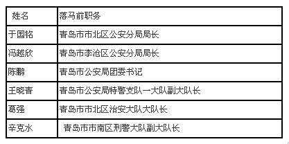 ◎2011年10月21日 青岛市公安机关通报称,14名公安民警因此案被查处,包括青岛市市北公安分局原局长于国铭、青岛市李沧公安分局原局长冯越欣。