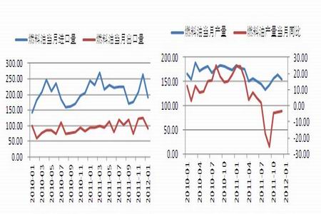 图4:燃料油进出口和产量