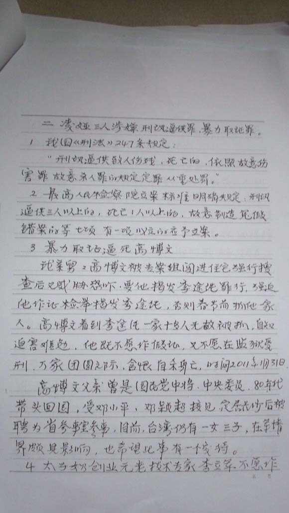 翟玉华透露,专案组为搜集证据,逼迫李途纯的舅舅高博文检举李途纯,致高博文除夕夜自杀身亡,又要李途纯的原总工程师李立军检举李途纯,并致李立军在河南遭灌酒当场醉死。
