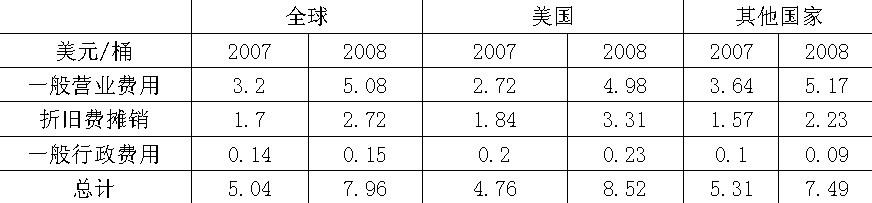 2008年全球直接生产成本为8.54美元/桶,含产量税之后全球总生产成本为每桶12.59美元,产量税全球平均在4.05美元左右,中东和美国的产量税相对较高。就总生产成本而言,西亚、前苏联和非洲地区为成本较低的地区,美国、欧洲为成本较高的地区。